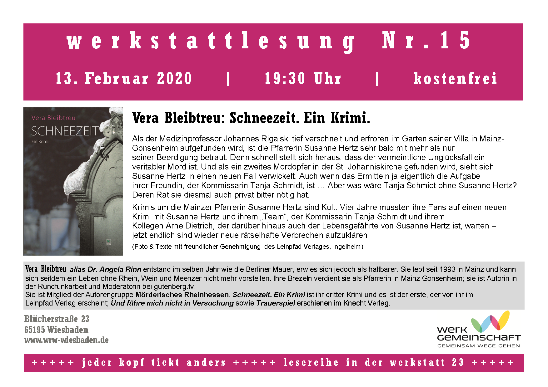 Und das schreibt die Autorin selbst zu diesem Abend in der Werkstatt 23: